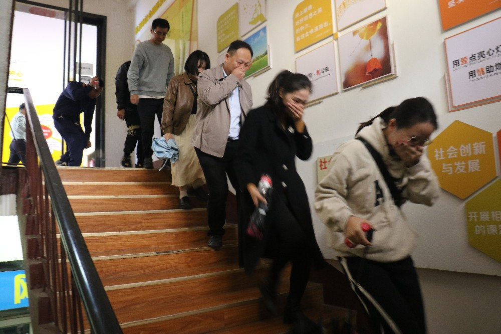 本次活动现场,来自湖南君消消防安全服务中心的王教官通过播放火灾现场视频、展示火灾事故图片等形式,向大家介绍了引发火情的原因及造成的危害,详细讲解了发生火灾后的自防、自救及逃生技能,并按种类、功能、用途介绍了不同的灭火器材及使用方法。通过现场演示,指导大家如何使用灭火器、防毒面具等有关消防器具。最后结合冬季单位用电安全、办公楼层安全、燃气安全常识和燃气泄露后如何处置等方面进行了详细的授课,并根据《株洲市民政局消防应急预案》组织全员进行了应急疏散演练。