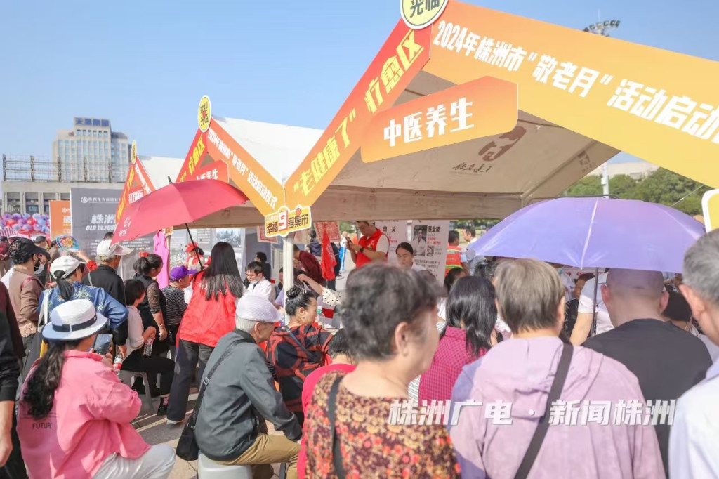10月11日,“朝夕相伴·幸福安养”2024年株洲市“敬老月”活动启动仪式在神农城广场举行。活动由市委、市政府主办,市民政局承办,市农商银行系统支持。