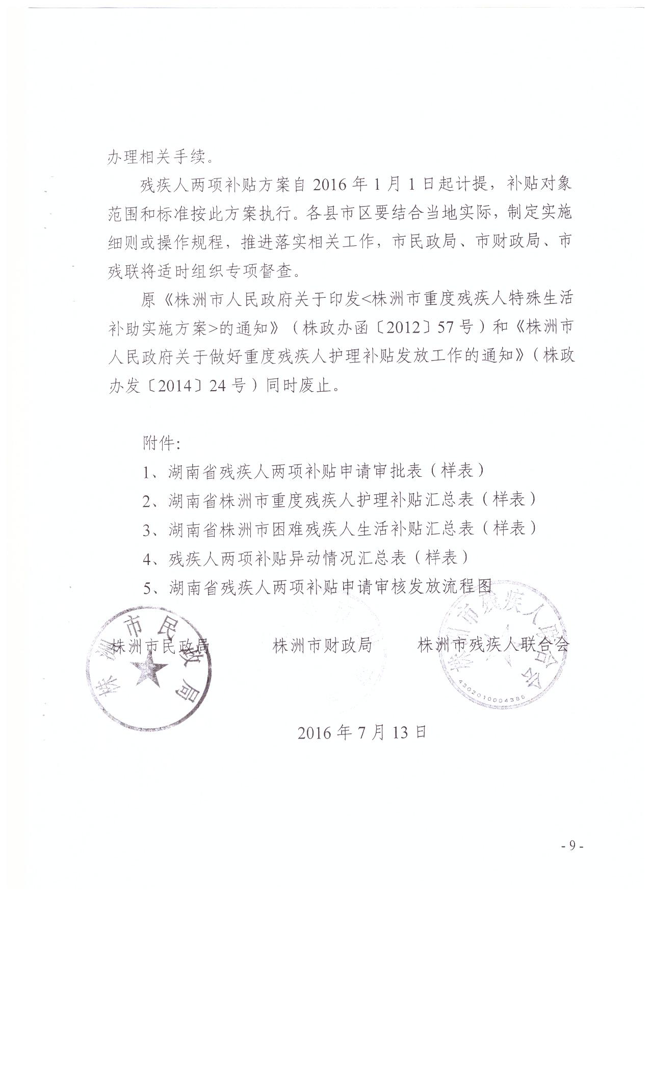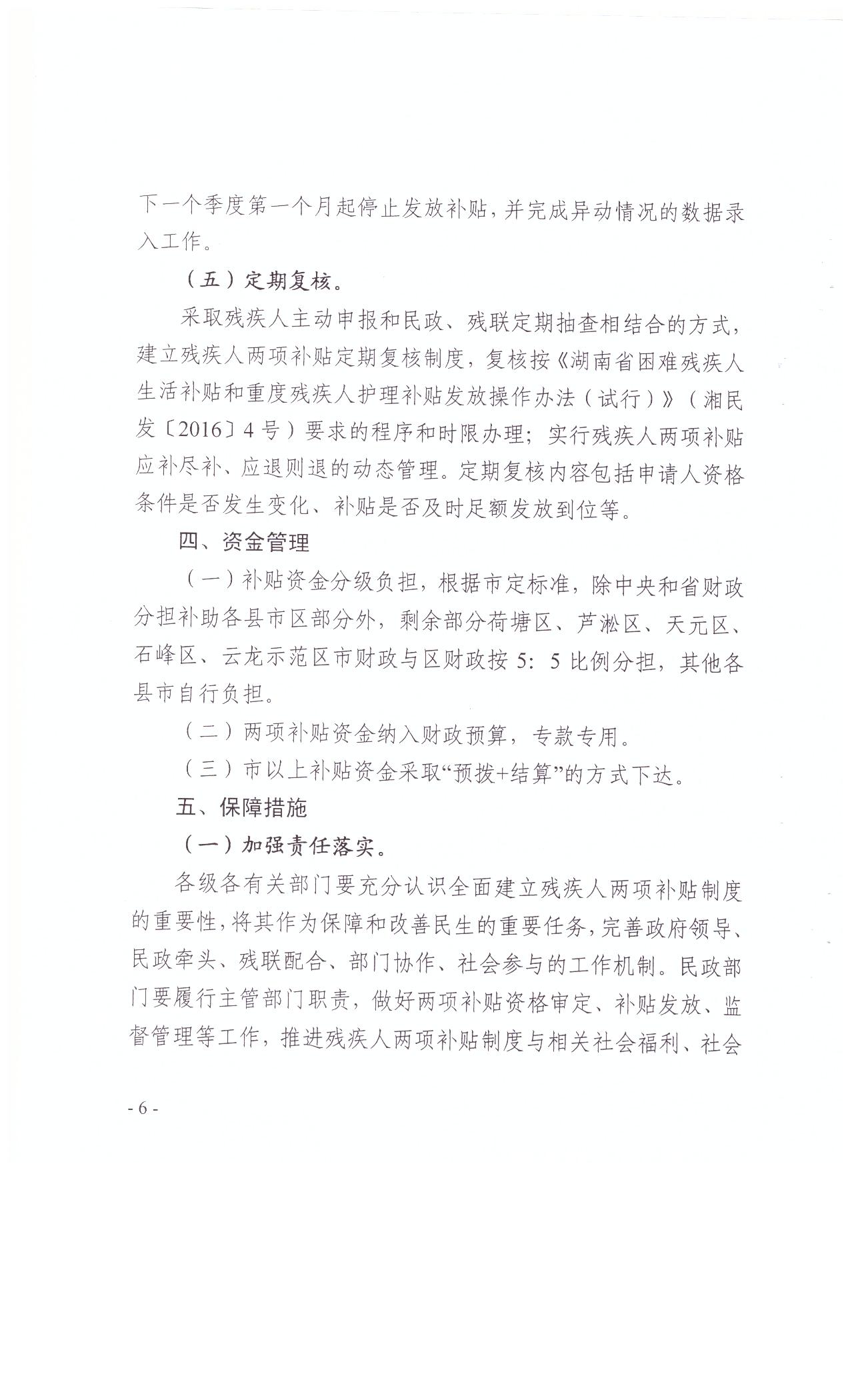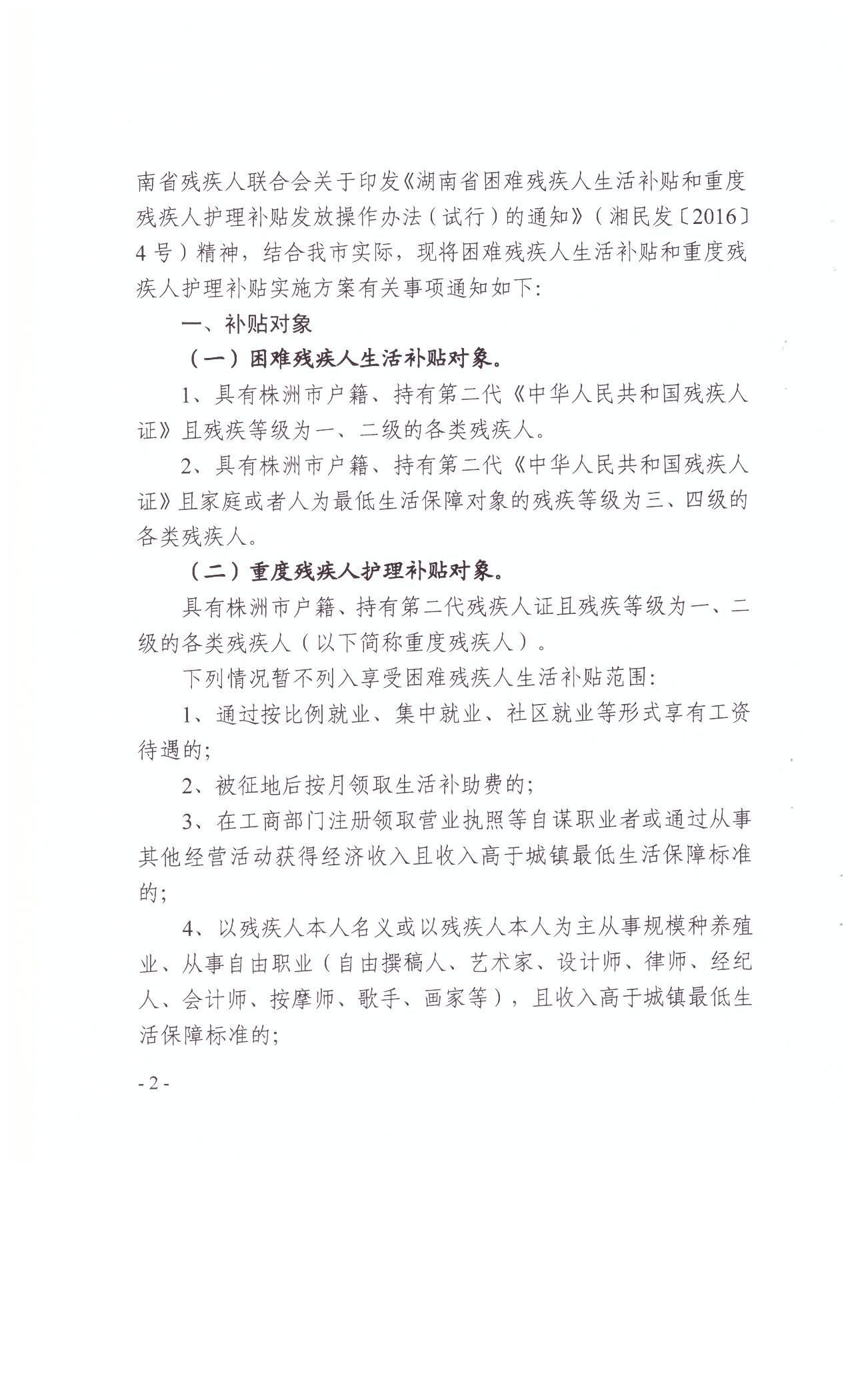 株洲市困难残疾人生活补助和重度残疾人护理补贴实施方案