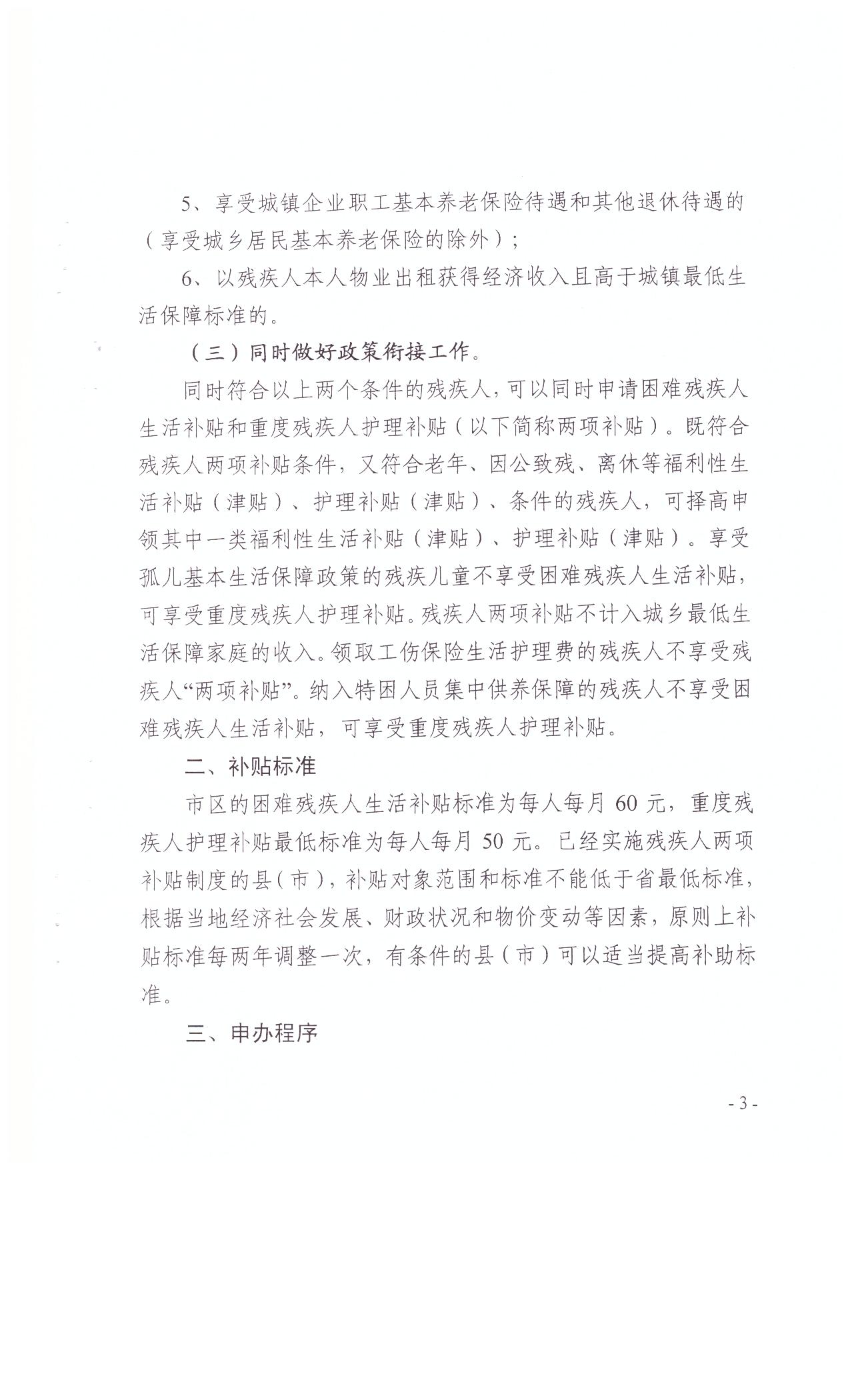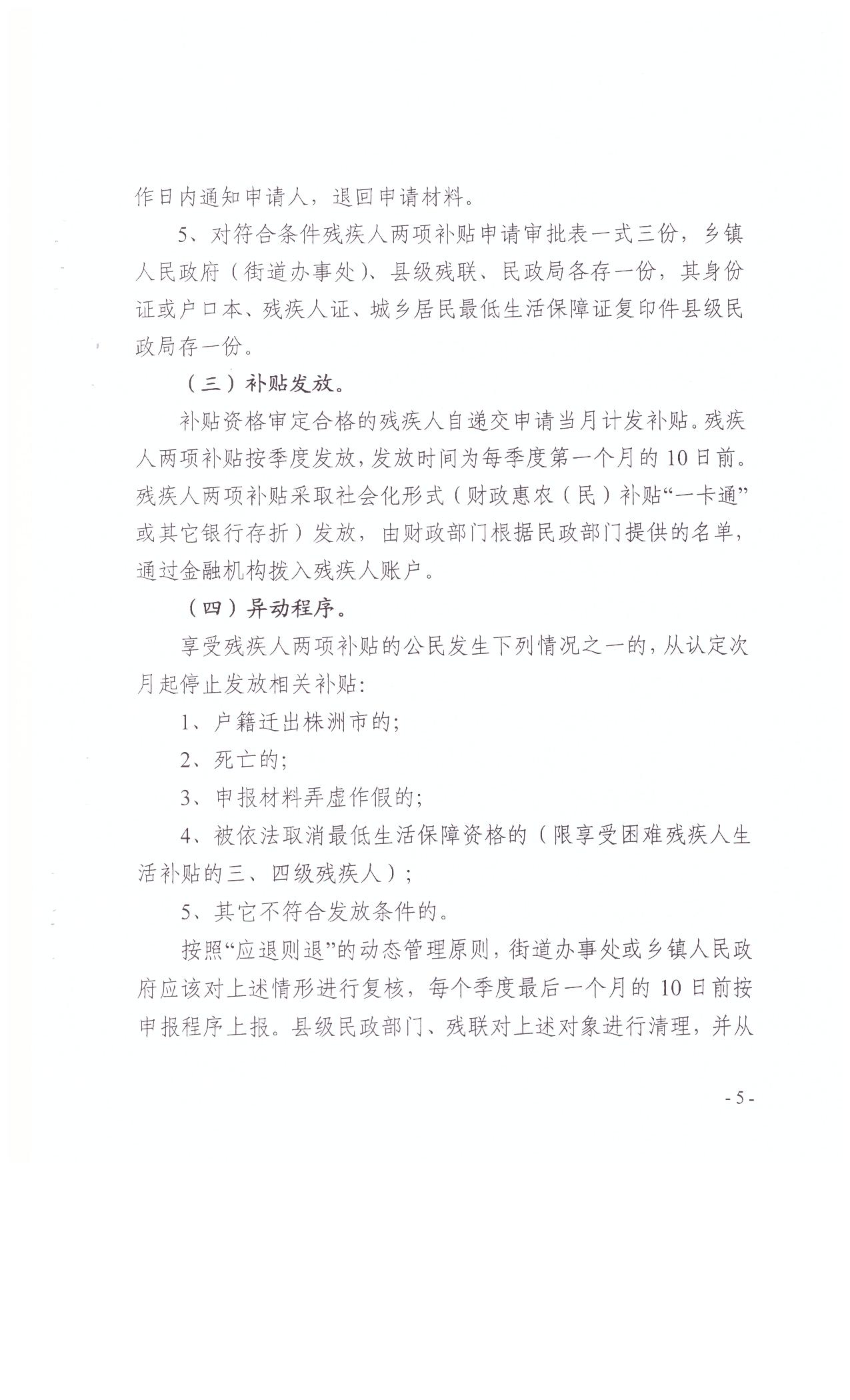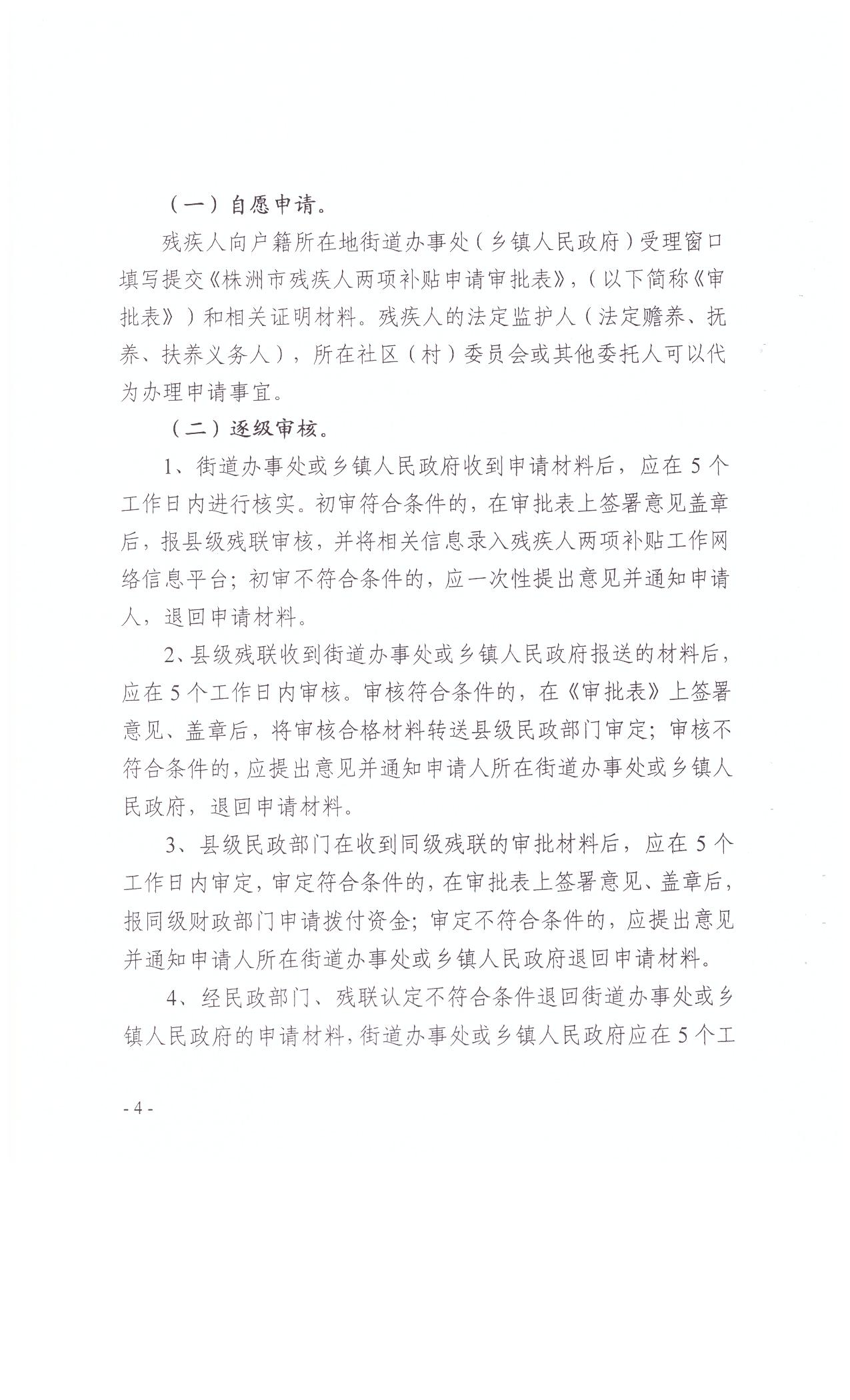 株洲市困难残疾人生活补助和重度残疾人护理补贴实施方案